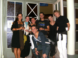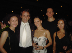 Baiba Kokina und Raimonds Martinovs vom Lettischen Nationalballett nach der Vorstellung von Christian Spucks "Grand Pas de Deux". Auf dem Foto: Nadja Kadel, John Bliekendaal, Baiba Kokina, Raimonds Martinovs mit Freundin am 9. Juni 2007.