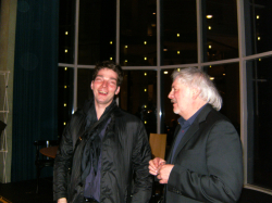 Der Choreograph mit dem Solisten Raimonds Martinovs und seiner Freundin nach der Vorstellung von "Grand Pas de Deux" am 7. Februar 2007 in Riga.