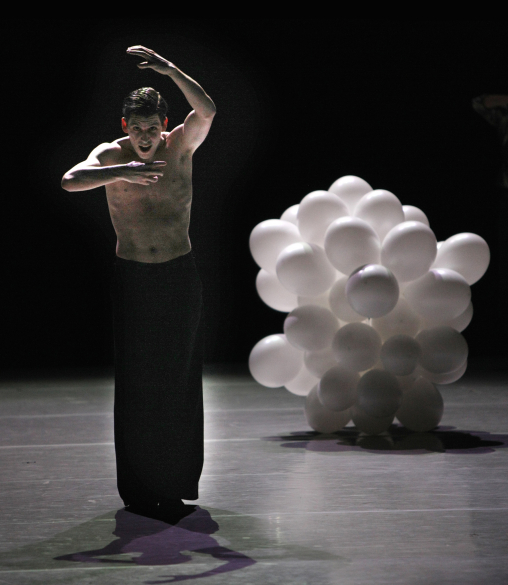 Anders als Glen Tetley, dessen «Pierrot lunaire» seit 1962 auf dem Programm vieler Ballettkompanien steht, versucht Goecke erst gar nicht, Licht in eine Geschichte zu bringen, die Giraud im übrigen gar nicht erzählt. Er lässt vielmehr die Körper seiner Tänzer sprechen, macht sie durchlässig für das dichterische Wort, bringt sie nicht zuletzt zum Atmen (was sich am Ende aber wie ein heißeres Krächzen anhört). Mal flattern die acht wie «finstre, schwarze Riesenfalter» über die Bühne. Mal meint man unter ihnen eine «bleiche Wäscherin» zu entdecken. Allein, bevor man ihrer habhaft werden kann, verflüchtigen sie sich, als wär’ all das Theater am Ende aus dem Stoff, aus dem die Träume sind. Allein Rupert Tookey, bleichgesichtig, mit schweißnasser Brust und schwarzen Hosen, gewinnt konkretere Kontur. Doch wie benommen vom alten «Duft aus Märchenzeit», verliert er zwischenzeitlich fast den Boden unter seinen Füßen, so leichtfüßig scheint er zu tänzeln. Allein, es sind am Schluss nur ein paar Luftballons, die schwerelos entschweben oder sich zu weißen Trauben ballen.