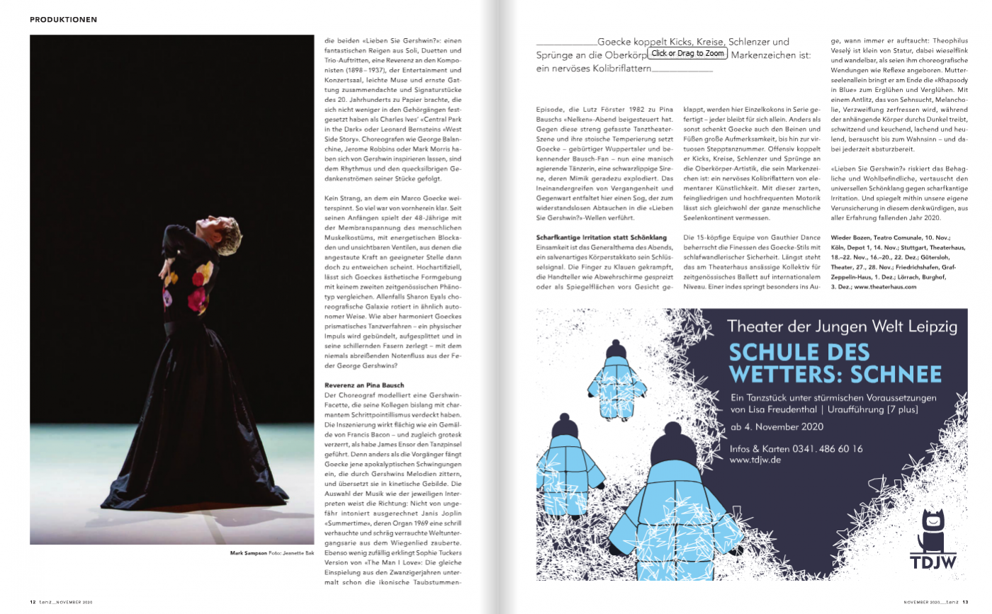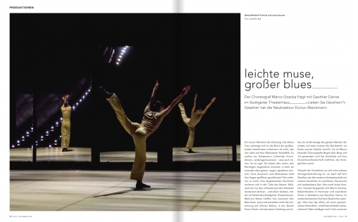 Kritik des Abends "Lieben Sie Gershwin?" von Marco Goecke in der Novemberausgabe der Zeitschrift TANZ
